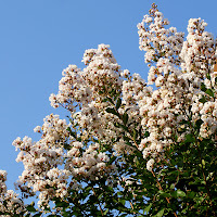 i fiori, di diversi colori a seconda delle varietà, larghi 2-3 centimetri, dai petali increspati, compaiono in gran quantità sui rami dell'anno, riuniti in pannocchie apicali lunghe fino a 15-25 centimetri. La fioritura è da luglio ad ottobre. Per ottenere una fioritura vigorosa su rami sempre giovani, in inverno occorre potare tutti i rami dell’anno precedente accorciandoli di almeno due terzi. Dai monconi rimasti, si origineranno nuove cacciate che a metà estate matureranno alla loro sommità le pannocchie floreali. Normalmente si potano più drasticamente le piante educate ad albero, mentre non si potano le piante cresciute come grandi arbusti o macchie
